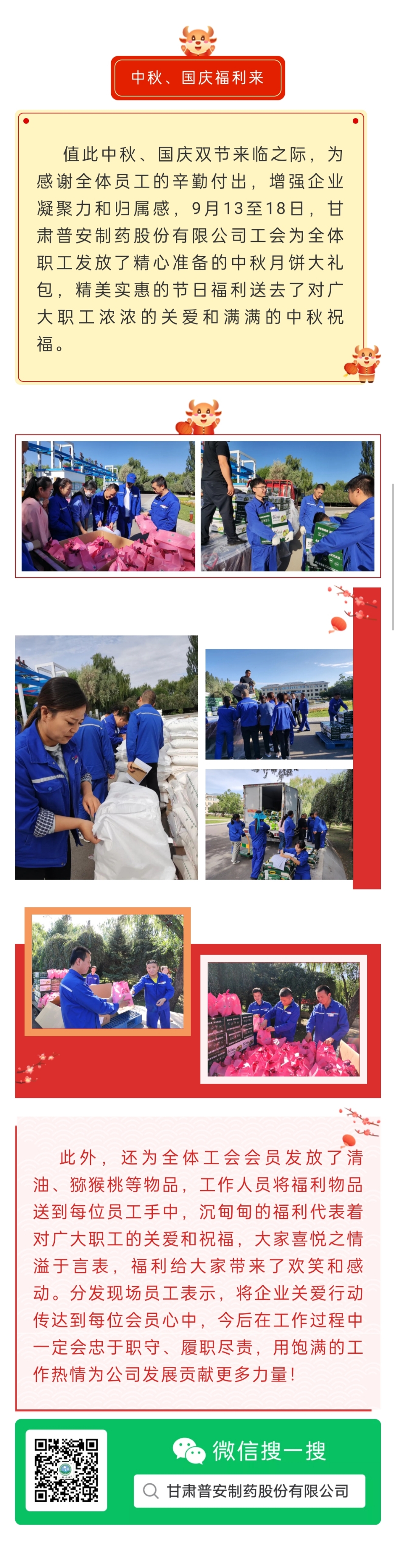 迎中秋、慶國慶 普安制藥發福利啦!