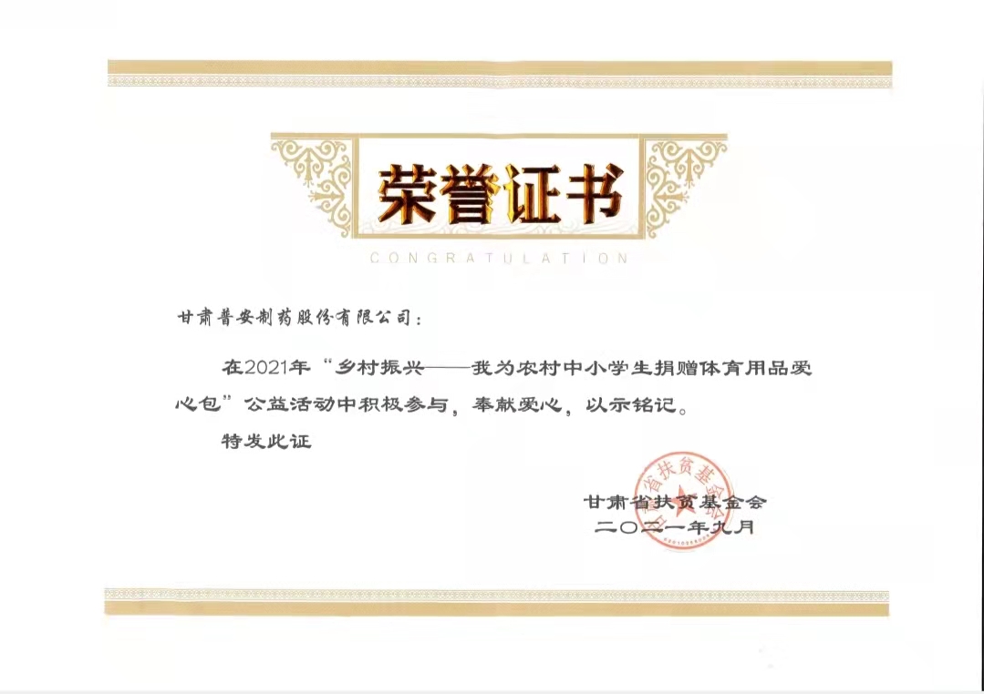 甘肅藥業(yè)集團普安制藥(以下簡稱:普安制藥)自成立以來,一直大力弘揚“普惠眾生、安康萬家”的企業(yè)理念,本著建設(shè)一流制藥企業(yè)、提供一流產(chǎn)品服務(wù)的目標,堅持黨領(lǐng)導企業(yè),堅持創(chuàng)新發(fā)展,穩(wěn)健經(jīng)營。在企業(yè)發(fā)展的同時更是懷有對國家、對民族、對社會的責任和擔當,將“回報于社會”作為一項重要內(nèi)容。
