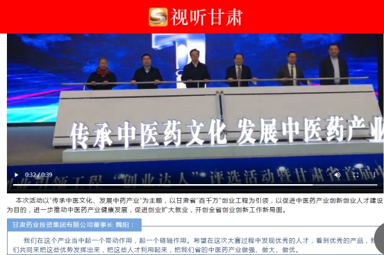 甘肅藥業投資集團魏陽董事長以特邀嘉賓身份出席此次中醫藥創業創新大賽開幕典禮,在觀展后被甘肅省廣播電視總臺、視聽甘肅、今日頭條、甘肅青春調頻等眾多媒體邀請,就關于此次中醫藥產業創業創新大賽做了相關的采訪。