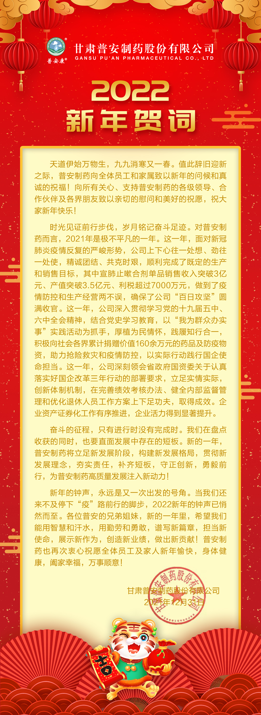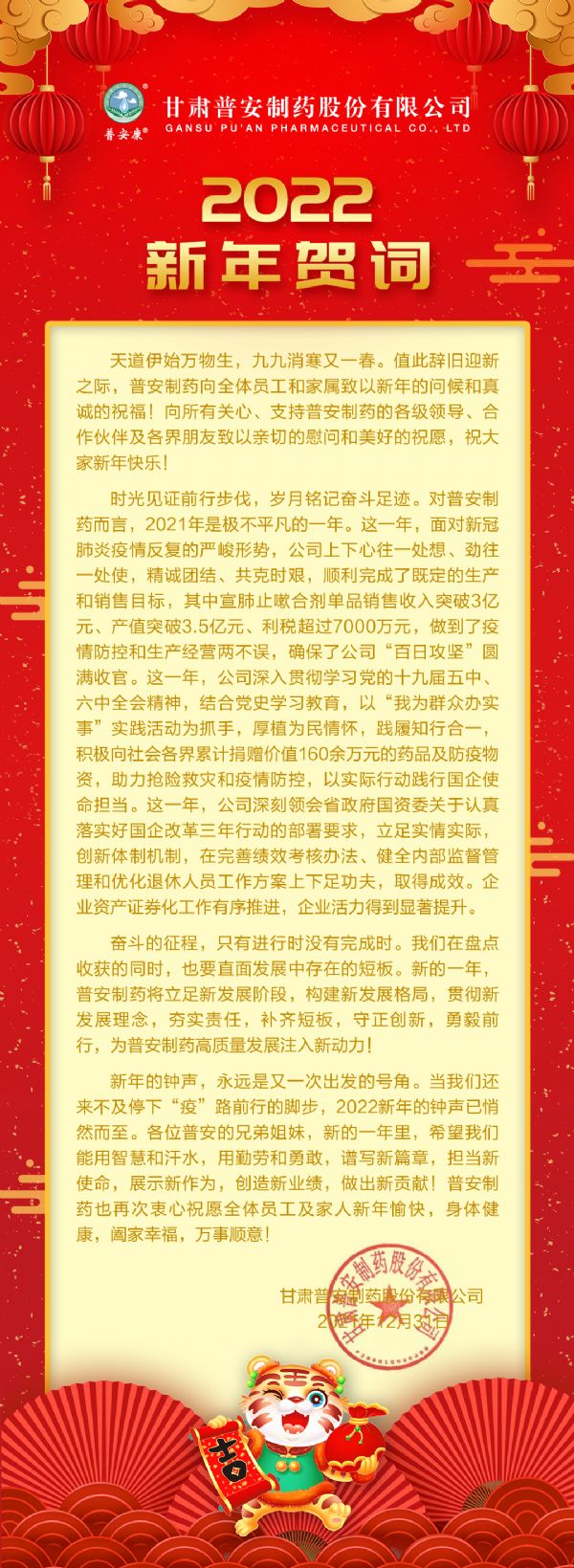 甘肅普安制藥股份有限公司新年賀詞