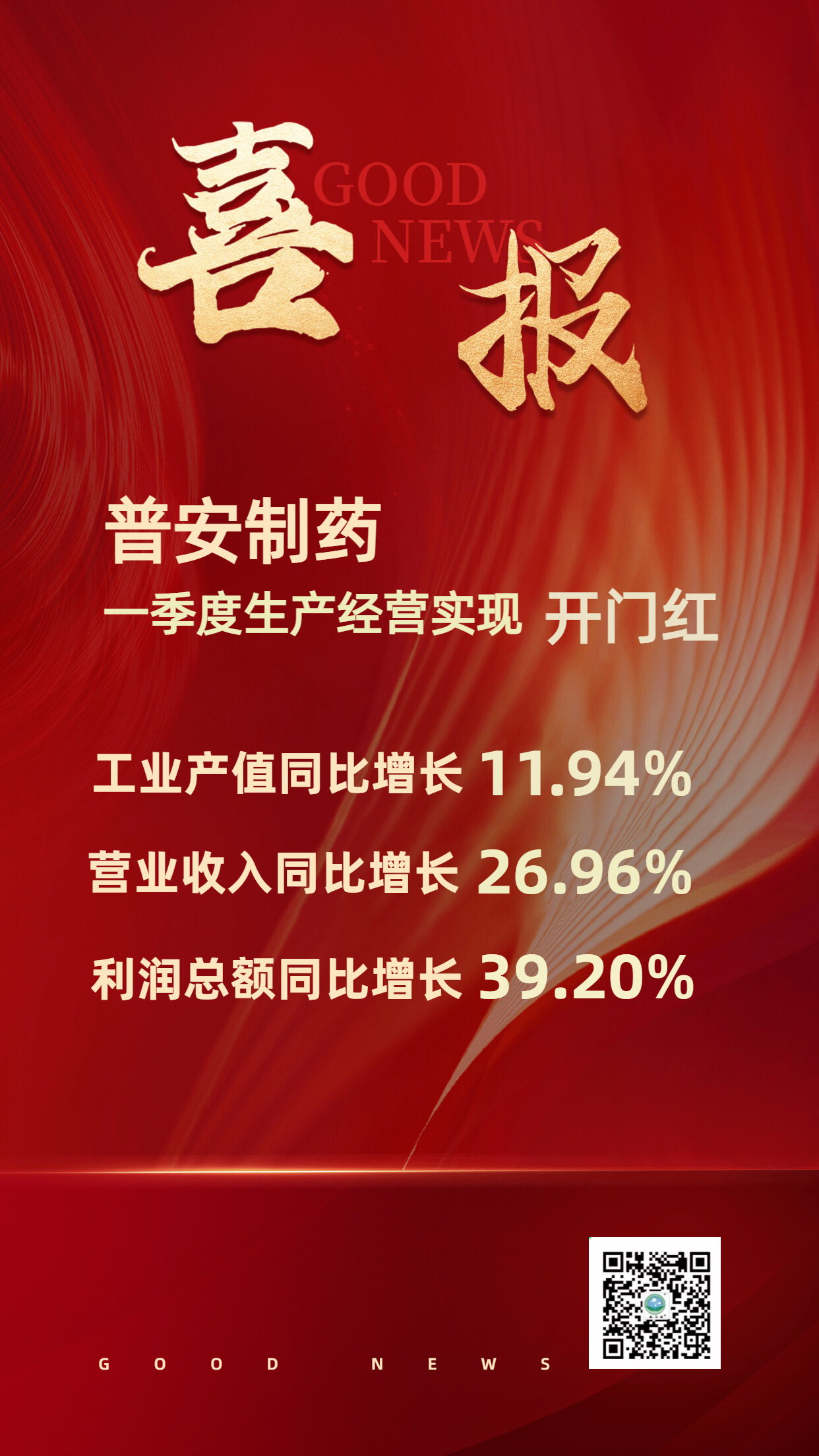 一季度,普安制藥緊盯全年目標,細化分解全年任務,統籌安排采購、生產、銷售等環節,嚴抓安全、環保、質量等工作。2022年一季度工業產值同比增長11.94%,營業收入同比增長26.96%,利潤總額同比增長39.20%,主要經營指標增長率均超過兩位數,為實現全年4億元工業產值,3.86億元營業收入的奮斗目標奠定堅實基礎。