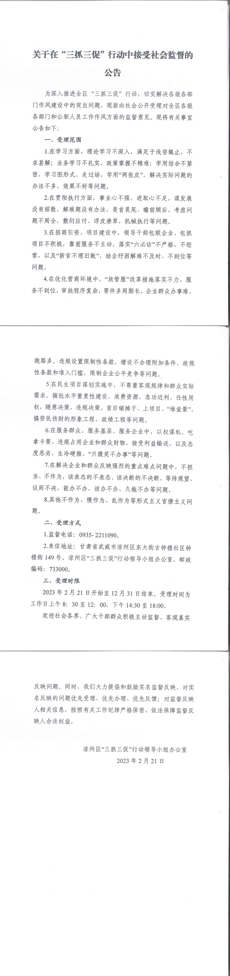 關于在“三抓三促”行動中接受社會監(jiān)督的公告