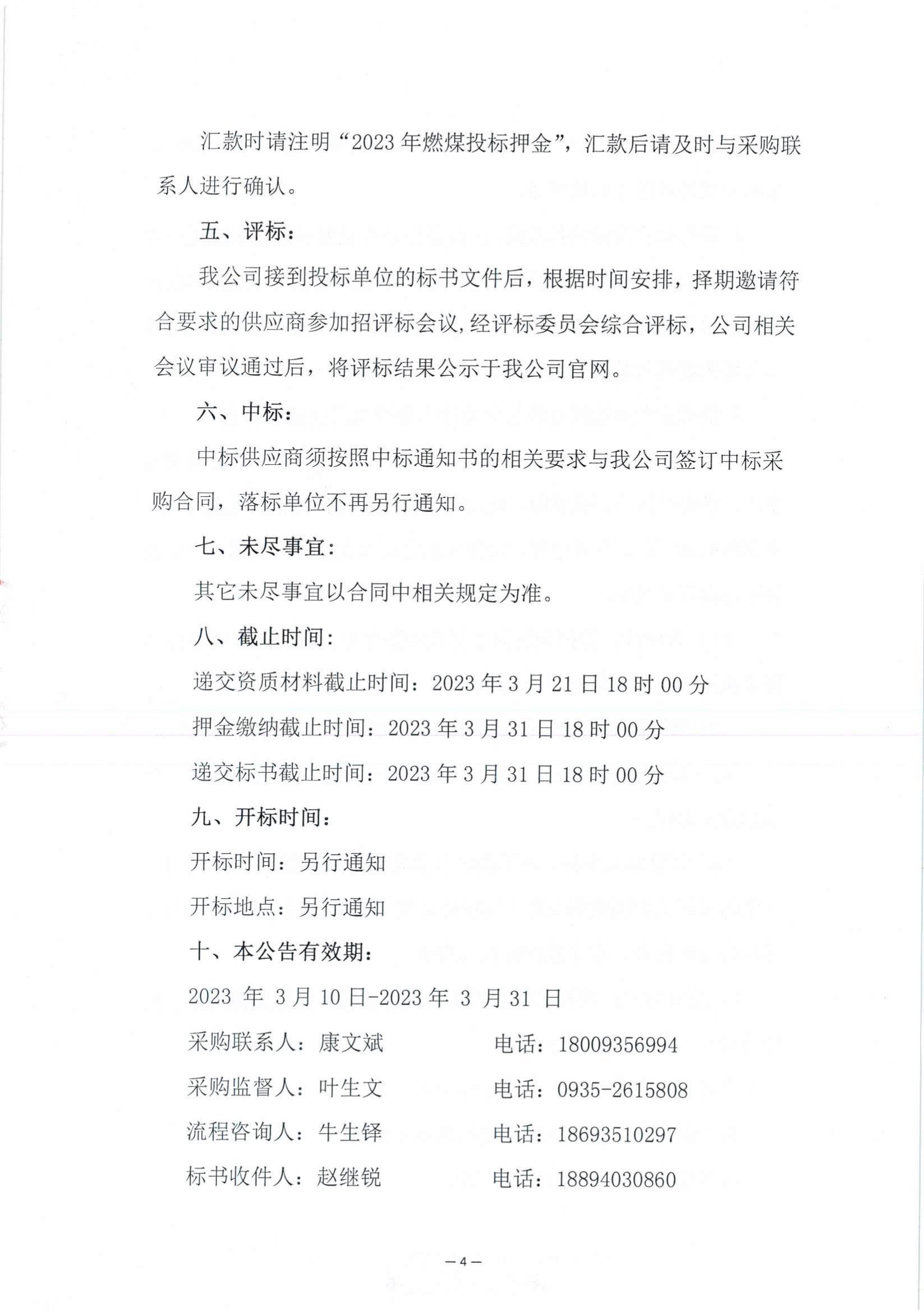 具體內(nèi)容詳見附件:甘肅普安制藥股份有限公司2023年4月燃煤采購競爭性磋商公告
