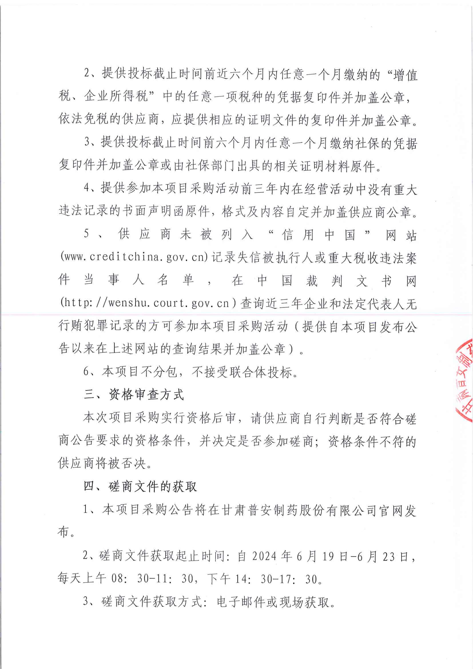 甘肅普安制藥股份有限公司年產5000萬盒(3億支)宣肺止嗽合劑等液體制劑生產線升級改造項目二期檢驗設備(精密儀器)采購競爭性磋商公告