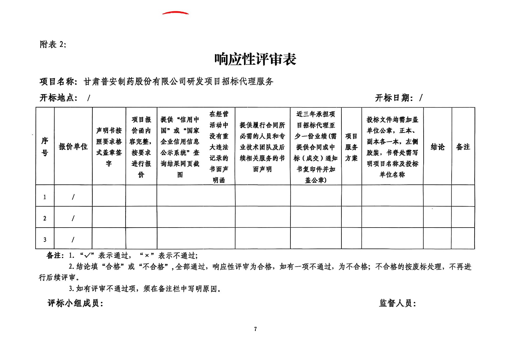 甘肅普安制藥股份有限公司研發項目招標代理服務招標公告